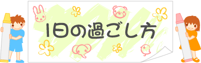 順次登園、視診、持ち物整理、クラス保育、室内自由遊び |
